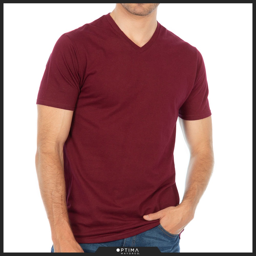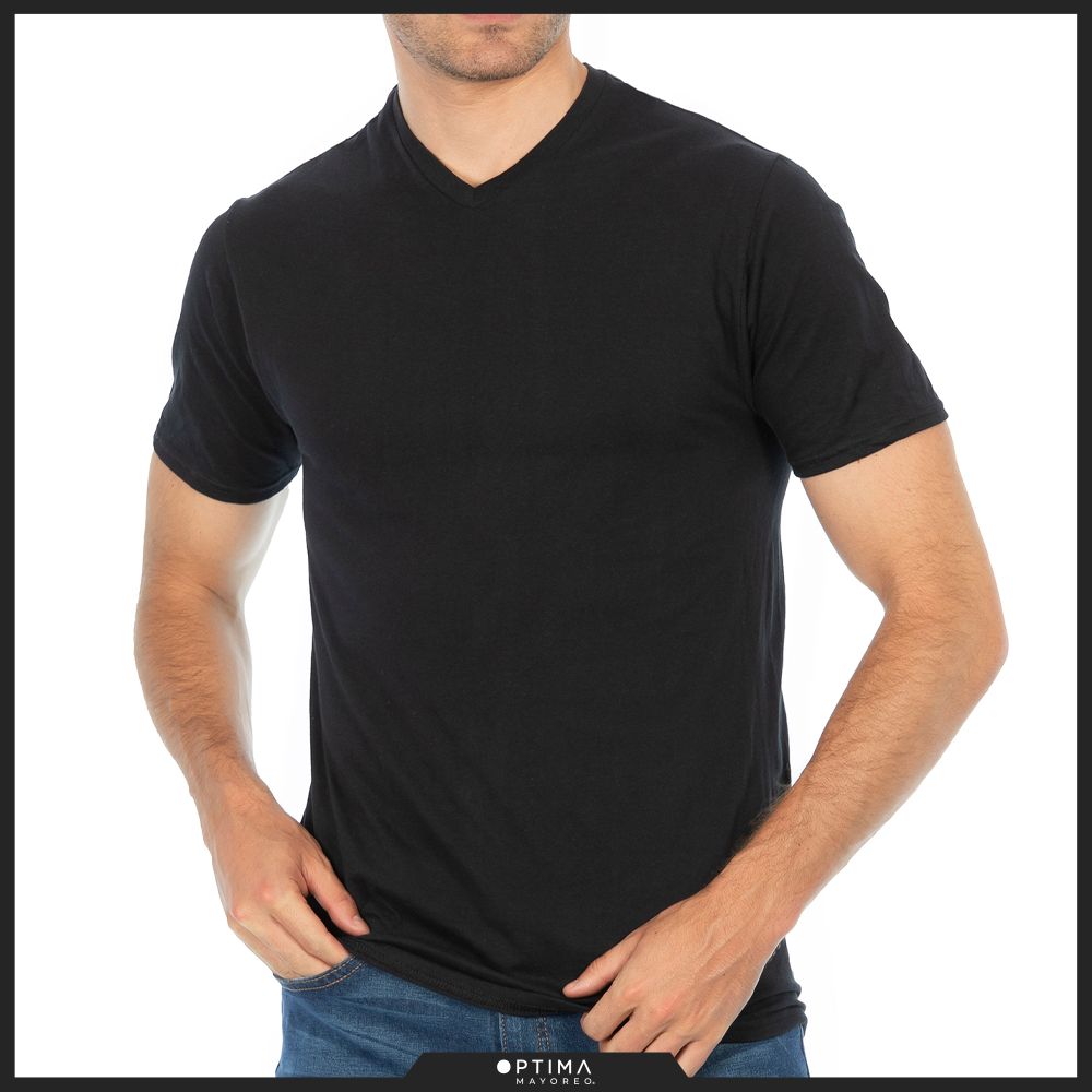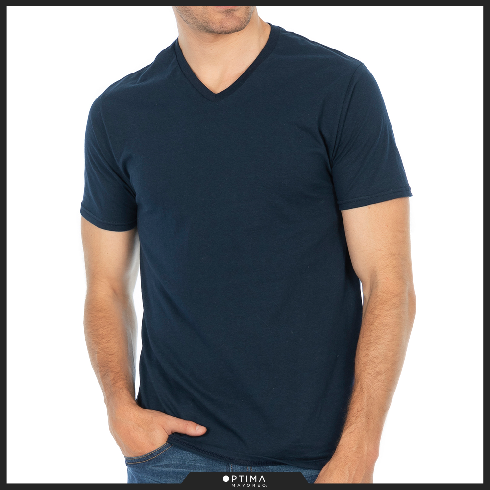 Descripción: Playera cuello "V" en rib, en corte regular, Tapa costura de hombro a hombro y doble pespunte en cuello, bajos y mangas.