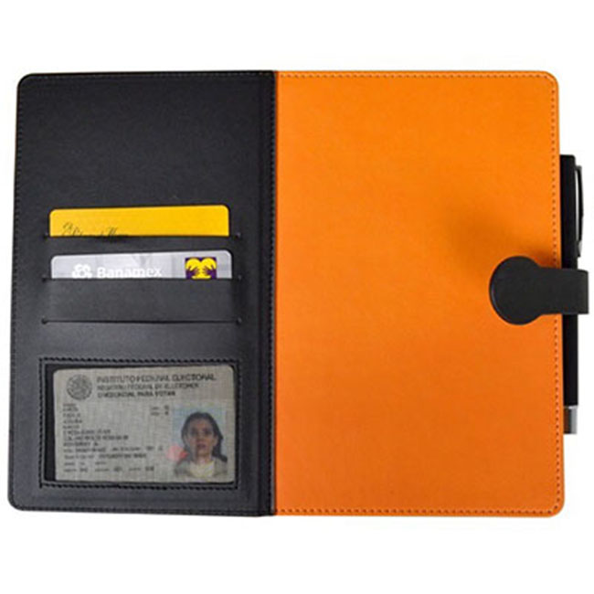 Descripción: Funciones: Libreta doble carátula para tarjetas. 160 Hojas a rayas. Broche magnético. Incluye bolígrafo