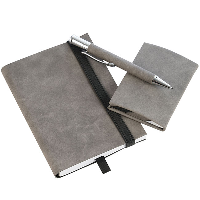 Medidas: Bolígrafo: 12.7 x 1.1 cm Libreta: 14.3 x 10.2 cm Porta-Tarjetero: 9.5 x 6.5 cm