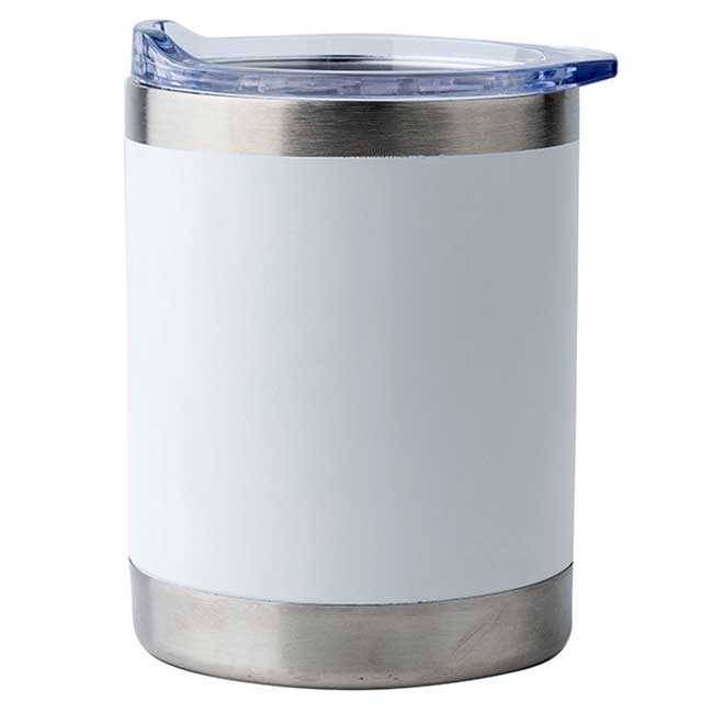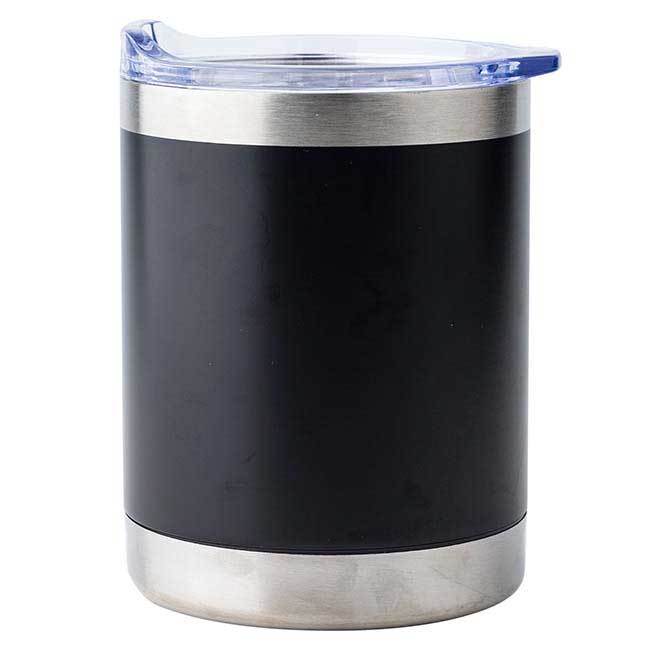 Descripción: Capacidad: 350 ml. Sistema de doble pared al vacío. Tapa de plástico con cierre deslizable. Colores: Blanco y Negro.