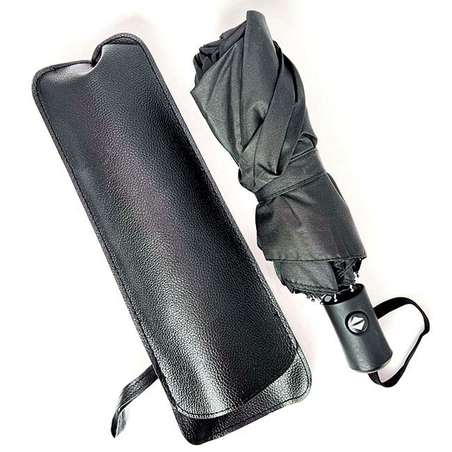 Descripción: Paraguas Tahoe l Juego de paraguas y estuche. l Paraguas de 8 paneles foldable l Elegante estuche de curpiel con correa lateral para sujetar. l Colores: Negro.