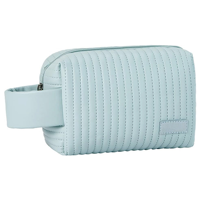 Descripción: Cosmetiquera Cumbal Cierre en zipper con correa en lomo para sujetar. Etiqueta al frente para personalizar. Colores: Beige, Café, Celeste, Rosa y Verde